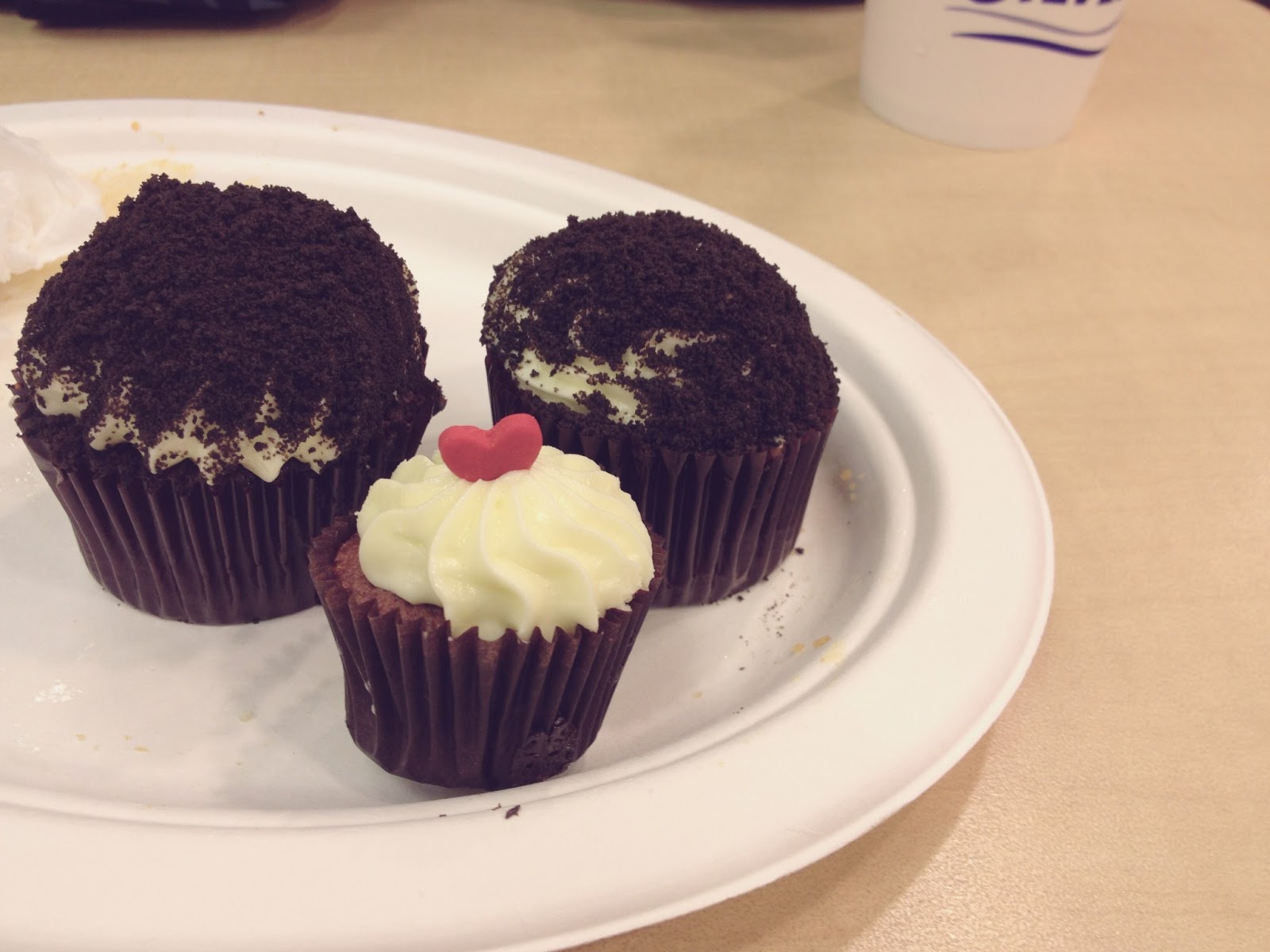 Luckily they still have 2 cookies and cream cupcakes left! Sooo, if you know me well, I'll definitely eye on anything oreo (with no cheesyyyy thing of course!). Oh, I forgot to mention that I was clueless on what cupcakes to buy! Due to.... the cheeeeseeeee issue! hahahaha! So, she did asked me whether I loved Red Velvet (everyone does). Anddddd, tadaaaa! I asked for 2 cookies and cream cupcakes. In addition, I've got a bonus FREE mini Red Velvet cupcake! :D